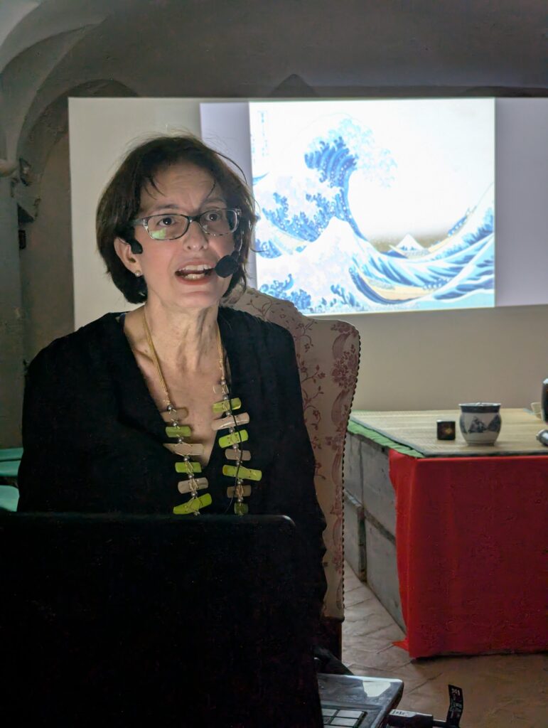 L’antica ritualità e l’armonia dell’arte figurativa giapponese sono state introdotte dalla storica dell’arte Sabrina Baldanza che, con la sua consueta profondità e competenza, ha rievocato immagini, stampe, tracciato collegamenti, raffronti tra arte orientale e occidentale.